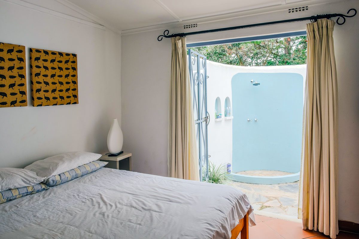 WITH ITS SPACIOUS and private surrounding gardens, Cottage 1 is perfect for professionals. It is has an included maid service (5 days a week), private parking and with a spacious patio that’s perfect for entertaining. Open plan kitchen and lounge area with a working area that includes a fitted desk. It has the added benefit of an outdoor shower, so you can shower in the privacy of Zambian sun or stars. The private grounds has a BBQ area and extra space for a vegetable patch.