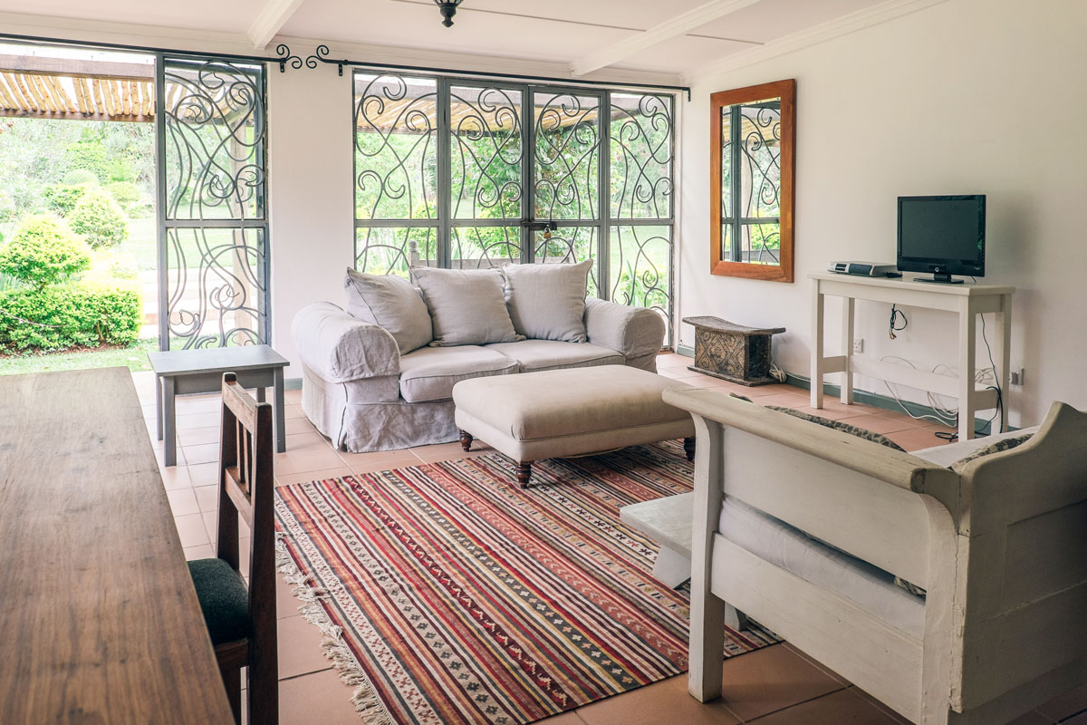 WITH ITS NEWLY redone modern open plan kitchen and lounge, with clean lines and contemporary finishes Cottage 3 is ideal for pet lovers, with its own fenced off private garden. It is an excellent open space for barbeques. A beautiful outdoor shower leads off one of the bedrooms, so you can shower in the privacy of Zambian sun or stars. Both bedrooms are en suite.